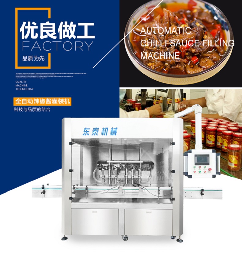 全自動(dòng)辣椒醬類醬體灌裝生產(chǎn)線作為公司新研發(fā)的灌裝設(shè)備在市場(chǎng)上起到了關(guān)鍵性的作用,獨(dú)特的技術(shù)讓整個(gè)包裝市場(chǎng)變得富有生命力,是集光,機(jī),電,氣于一體,采用活塞式定量原理,灌裝精度高,操作簡(jiǎn)單,維護(hù)方便,設(shè)備主要材質(zhì):采用SUS304不銹鋼制造,符合衛(wèi)生要求.灌裝過(guò)程采用亞克力透明板與外界隔離,保證灌裝的衛(wèi)生要求。灌裝采用壓力式灌裝,無(wú)需配裝高位罐,簡(jiǎn)化了安裝工序,提高了灌裝效率。可廣泛應(yīng)用于食品、醬料行業(yè)產(chǎn)品的自動(dòng)化包裝生產(chǎn)。幾乎能夠灌裝所有醬類、醬料物體是該款全自動(dòng)辣椒醬類醬體灌裝生產(chǎn)線最大的優(yōu)勢(shì),包括大塊肉醬、顆粒醬、濃醬、豆瓣醬、甜面醬、辣椒醬等。